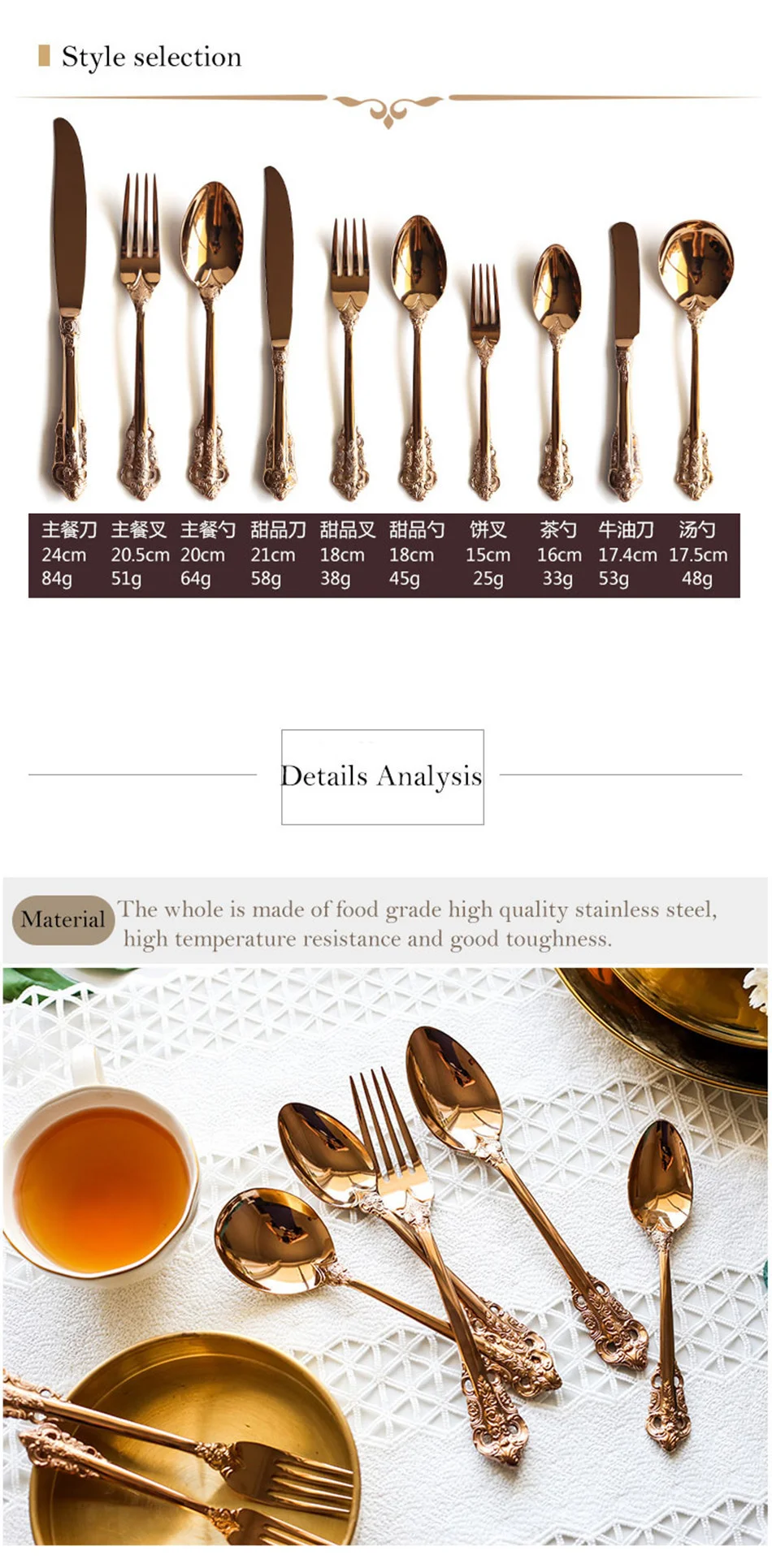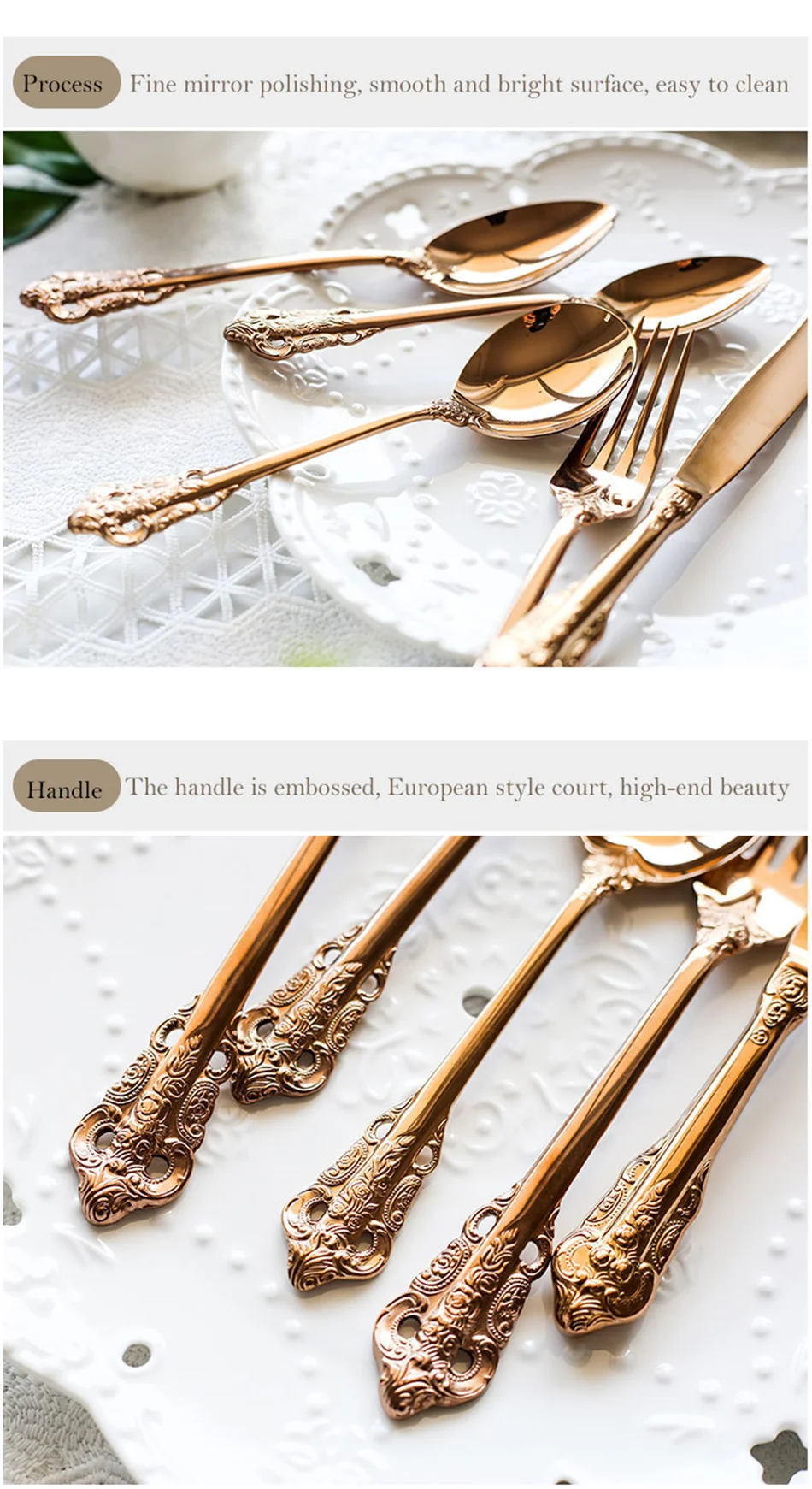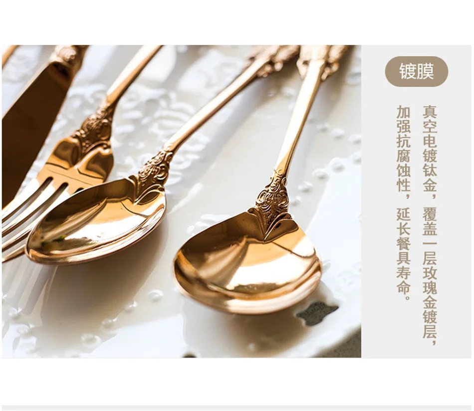 Роскошный рельефный нож и вилка ложка корт десерт чайная посуда костюм ГОВЯЖЬЯ палочка нож розовые золотые столовые приборы