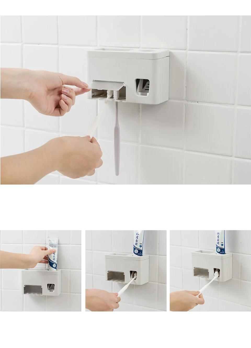 Автоматический Дозатор зубной пасты держатель зубной щетки набор с 4 чашками настенное крепление для мытья туалетных принадлежностей стеллаж для хранения аксессуаров для ванной комнаты