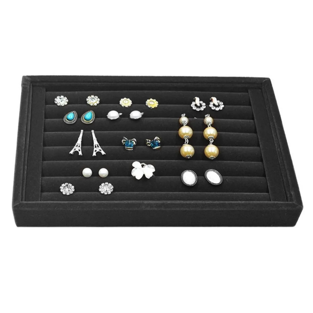 Портативный бархат ювелирные изделия кольцо серьги Вставка дисплей Запонки Организатор коробка деревянный плоский Штабелируемый Лоток Держатель Витрина для хранения