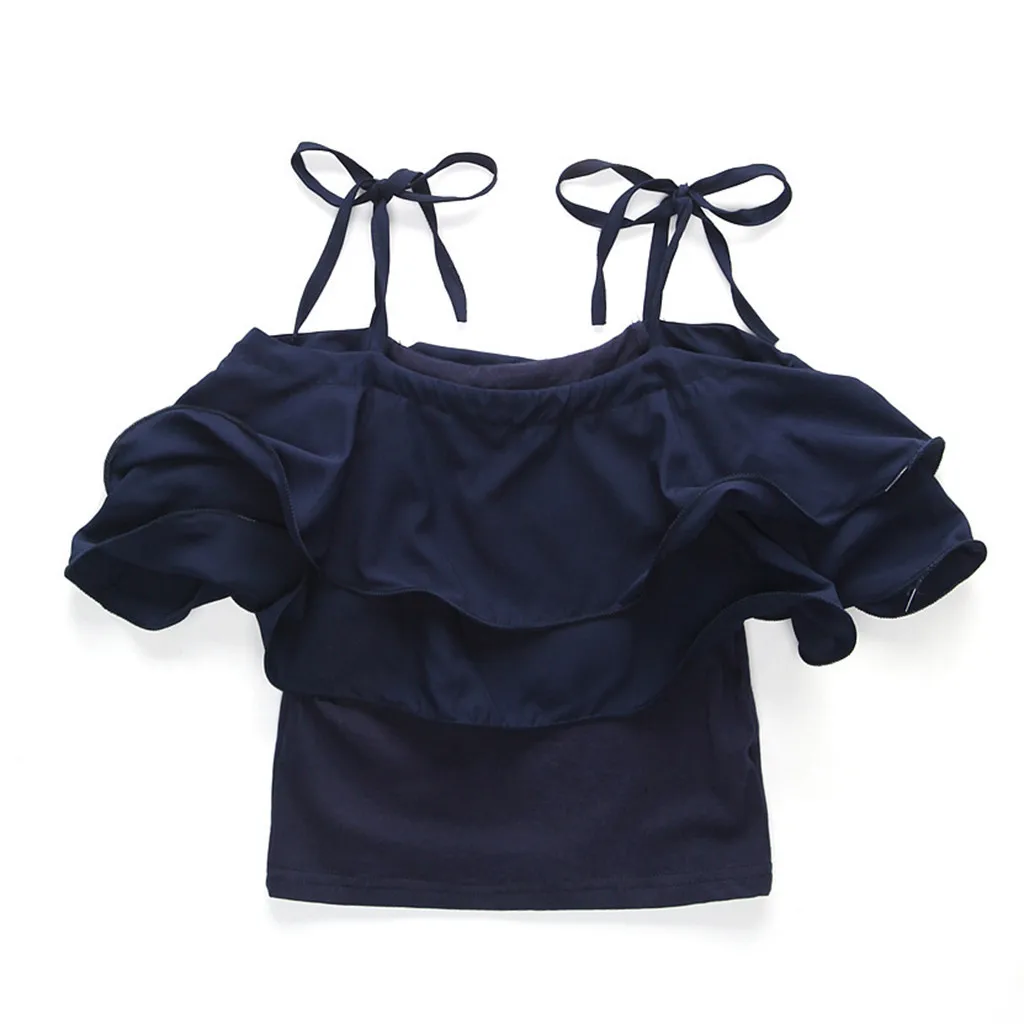 Летняя одежда для маленьких девочек Футболка с открытыми плечами комплект из топа и штанов с цветочным принтом