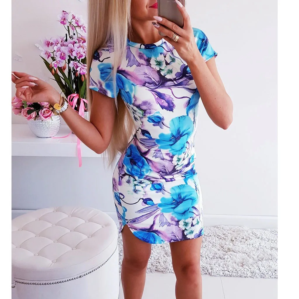 Женское платье с цветочным принтом Облегающее мини-платье с короткими рукавами и воротником; Вечерние платья