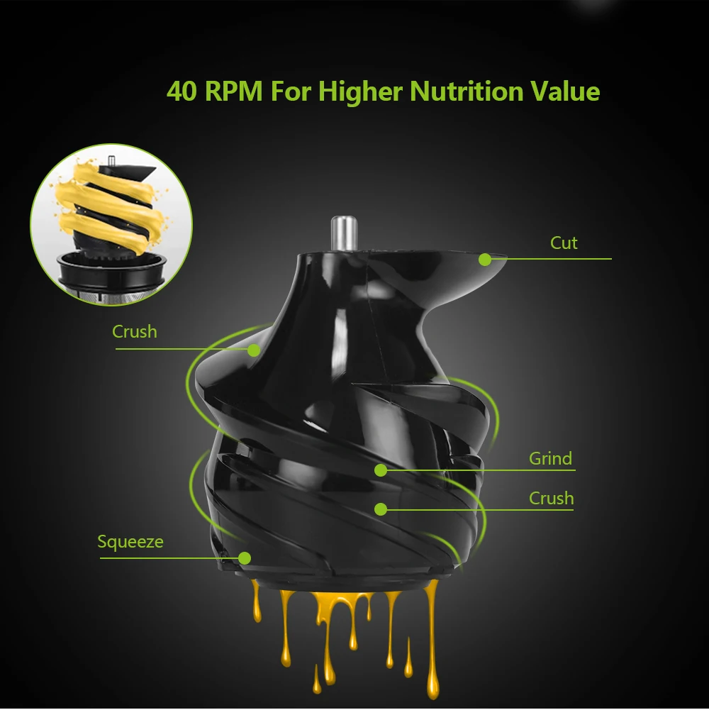 ✔Максимальная ценность питательных веществ-наша соковыжималка с мотором 200 Вт вращается при 40 об/мин, что более медленное и мощное, чем другие медленные соковыжималки на рынке, меньше тепла и минимального окисления, сохраняет максимальное питание от фруктов и овощей, до 90% выход сока.