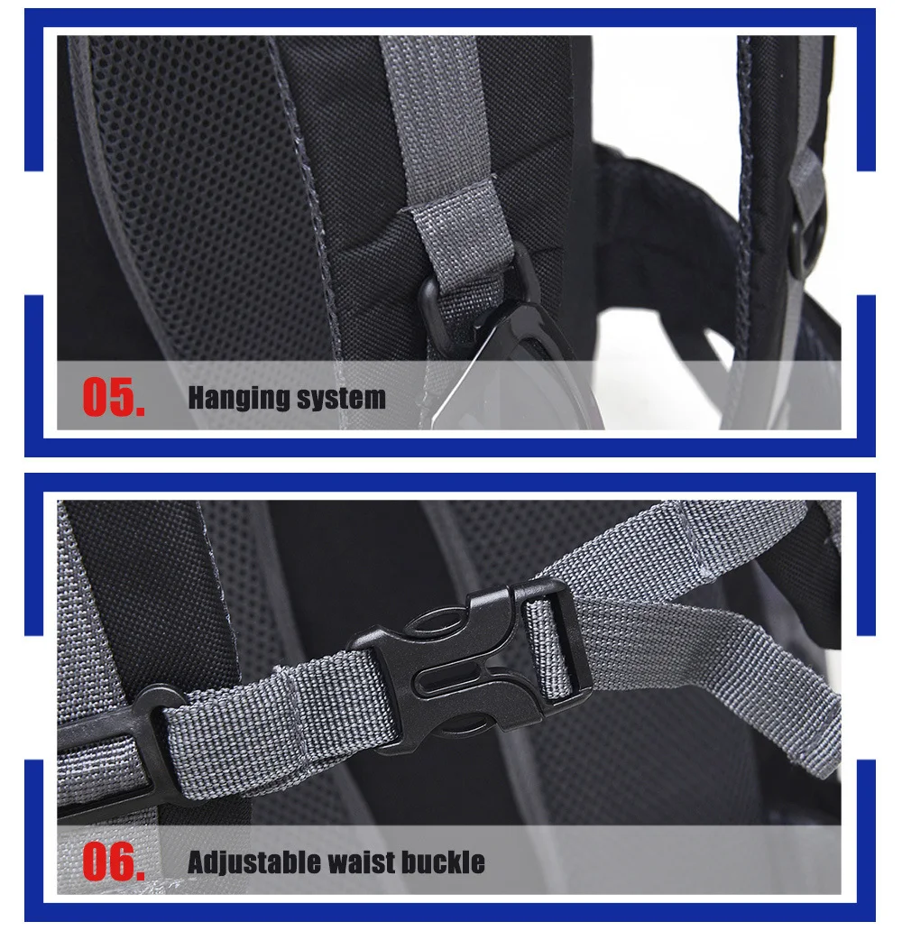 Походные рюкзаки для кемпингаMochila 45lРюкзак Водонепроницаемая Треккинговая спортивная сумка, рыболовные рюкзаки, сумка для альпинизма, дорожный рюкзак для альпинизмаОсобенности:-Изготовлен из ткани Оксфорд, водостойкий, устойчивый к разрыву, легкий и прочный-Рюкзак большой вместимости 50 л, одно основное отделение, три передних кармана на молнии для хранения телефонов или других мелких предметов, два боковых кармана для переноски большего количества бутылок с водой, сумка для хранения обуви и два сетчатых кармана на поясном ремешке, удобны для походов, альпинизма, кемпинга-Обувь отделена мешочком для хранения, предотвращая попадание предметов внутри рюкзака в грязный, удобный и практичный-Эргономичные мягкие плечевые ремни и Задняя поддержка для лучшей вентиляции и удобной нагрузкиL-С регулируемой пряжкой и ремешком на каждой стороне, чтобы повесить на Треккинговый Полюс-Регулируемый плечевой ремень, нагрудный ремень и поясной ремень, чтобы соответствовать вашим потребностям, удобно носить-Подходит для активного отдыха, например, путешествий, альпинизма, кемпинга и пеших прогулок и т. д.SPecifications: -Емкость: 50 л -Максимальная нагрузка: 35 кг-Материал: 210D + 400D Оксфорд-Посылка Вес: 0,8 кг-Размер: 56 см x 36 см x 23 см (HxLxW) Примечание:1. Все фотографии являются настоящей съемкой, но из-за воздействия освещения и разных экранов, показанный цвет немного отличается.2. Все размеры выполнены вручную, поэтому возможны отклонения на 1-2 см. Спасибо.