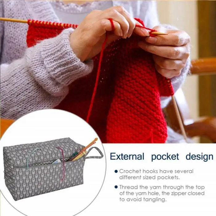 Сумка для хранения имеет большую емкость, которая может хранить Крючком Крючок, ножницы, очки, телефон, узоры и т. Д.