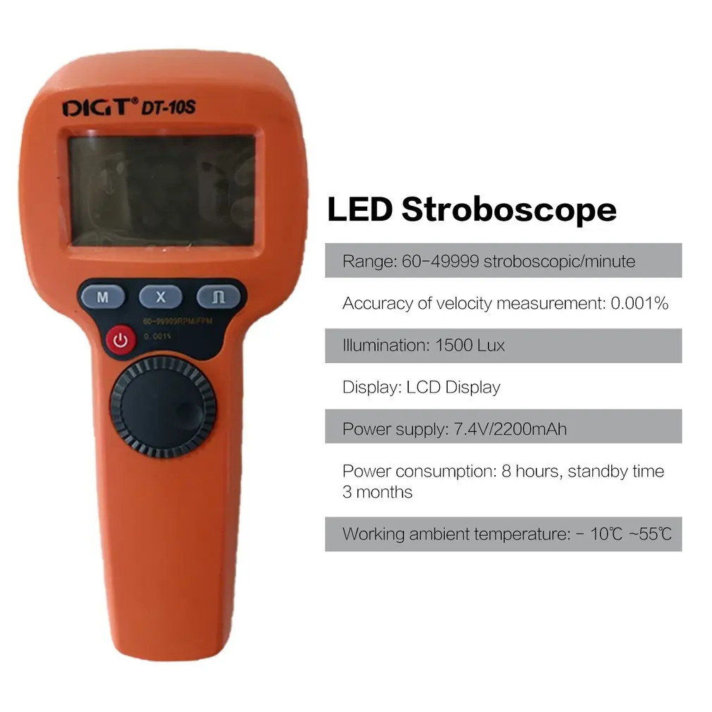 Цифровой DT-10S 7,4 В 2200 мАч 60-99999 Стробоскоп/мин 1500LUX ручной светодиодный стробоскоп измерение скорости вращения Flash Velocimeter