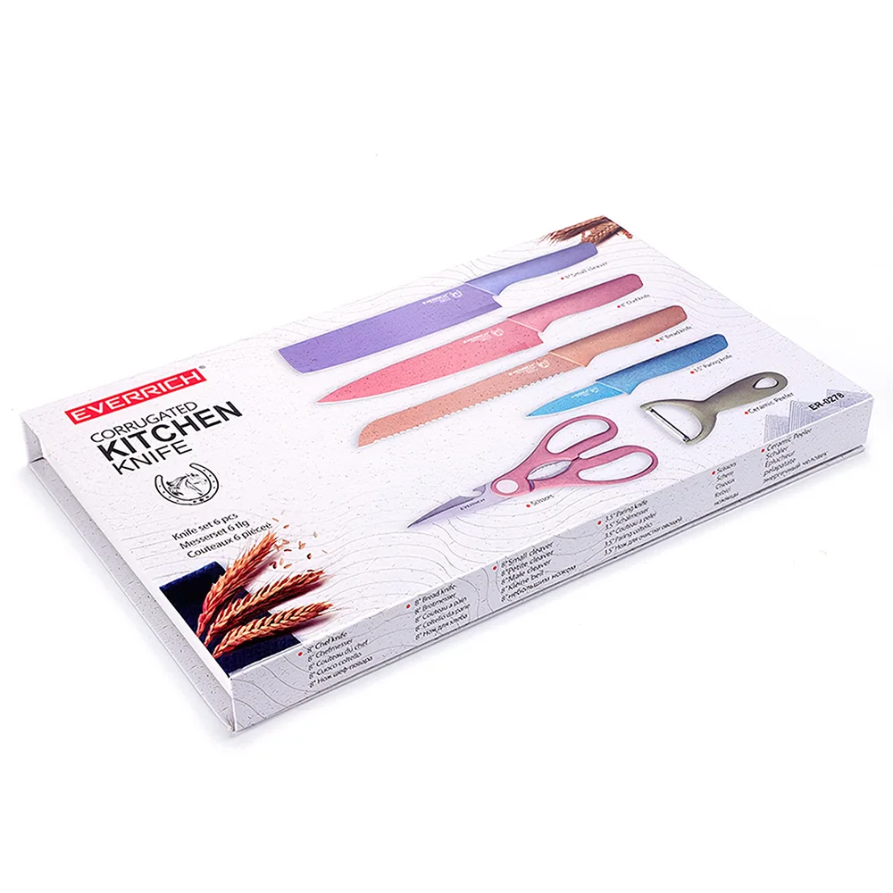 EVERRICH ER-0278 6 шт набор кухонных ножей из гофрированной цветной нержавеющей сталиСтальной нож шеф-повара нож для хлеба Кливер ножницы для кухонного бара