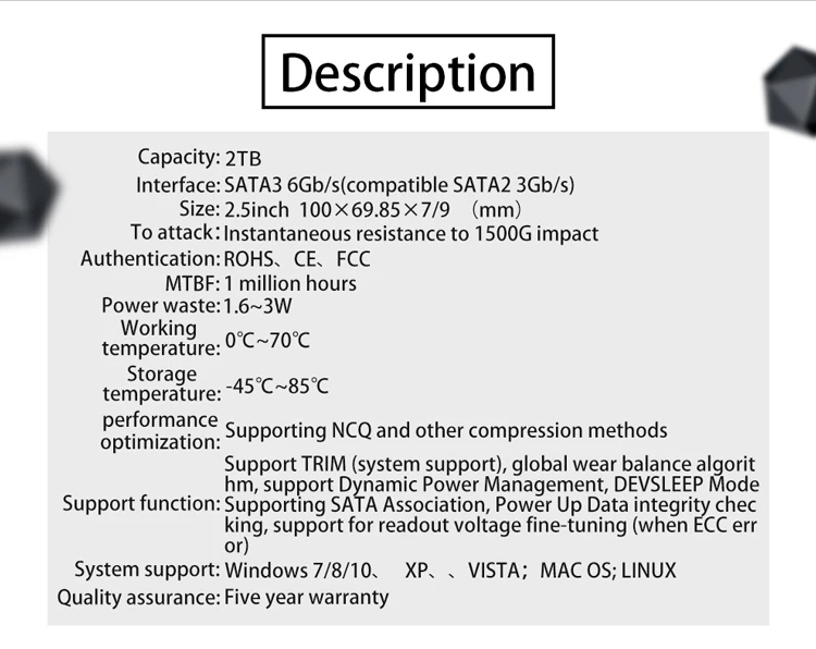 1) Вопрос: доставка О: Пожалуйста, убедитесь, что ваш адрес доставки и контактное имя верны. Пожалуйста, обратите внимание, что на доставку за границу будут влиять многие факторы, такие как таможенная обработка, почтовая забастовка и так далее. Поэтому не стесняйтесь связаться с нами, чтобы продлить время получения, если вы не получили свои товары вовремя, и вы не потеряете свои деньги. 2) Почему емкость SSD, отображаемая на компьютере, будет меньше? Ответ: В соответствии с международным стандартом 1000кб/1 ГБ = 1 Мб, но операционная система использует бинарный алгоритм, поэтому фактическая емкость = нормальная емкость x 0,93, это может показать меньше в ОС, так как некоторая емкость предназначена для прошивки в SSD. Поэтому фактическая емкость не полностью равна нормальной емкости. Пожалуйста, обратите внимание, спасибо. 3) Вопрос: Как насчет гарантии? И стоимость возврата? О: Мы гарантируем, что все рамы были протестированы на 100% перед отправкой, если мы попробуем каждый метод, который мы предлагаем, вы все еще не можете решить ваши проблемы, мы, возможно, придется сделать замену. Товары должны быть отправлены местной авиапочтой (не принимаются DHL/FEDEX/UPS/TNT и т. Д.), при отслеживании номера онлайн, мы отправим вам новые. Все возвращенные товары должны быть в оригинальной упаковке и состоянии Мы дадим вам скидку в вашем следующем заказе или отправим вам случайный подарок, чтобы уменьшить стоимость возврата, пожалуйста, понимание.
