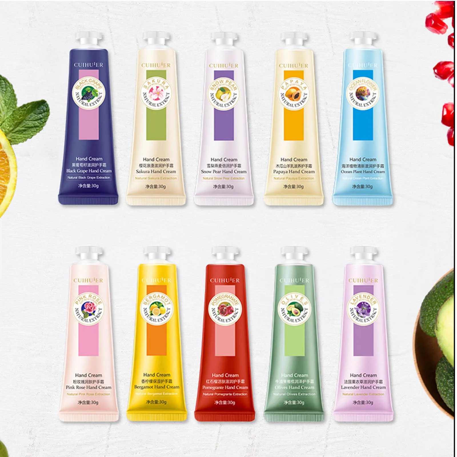 100% новый и высокое качество! Питает кожу, придает коже необходимую воду. Увлажняет, увлажняет кожу и делает кожу гладкой. Помогает улучшить сухость кожи. Функции: увлажнение, отбеливание, защита от перегрева, осветление 10 ароматов: Лилия, роза, лимон, персик, лаванда, авокадо, ромашка, фаленопсис, гранат, красный тагерин. Название продукта: растительный крем для рук Тип: всего 10 различных типов Вес нетто: 30 г для каждого типа Размер: полный размер Количество: 10 шт.