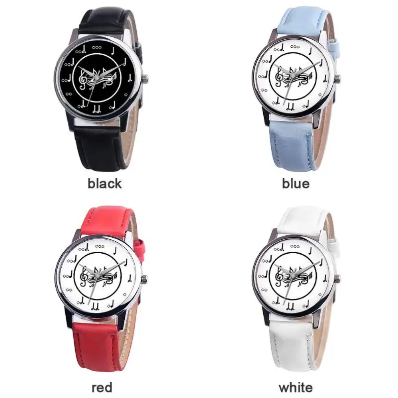 Модные кварцевые часы из искусственной кожи с ремешком; повседневные женские и мужские часы с принтом музыкальных символов; аналоговые наручные часы с круглым циферблатом; подарок