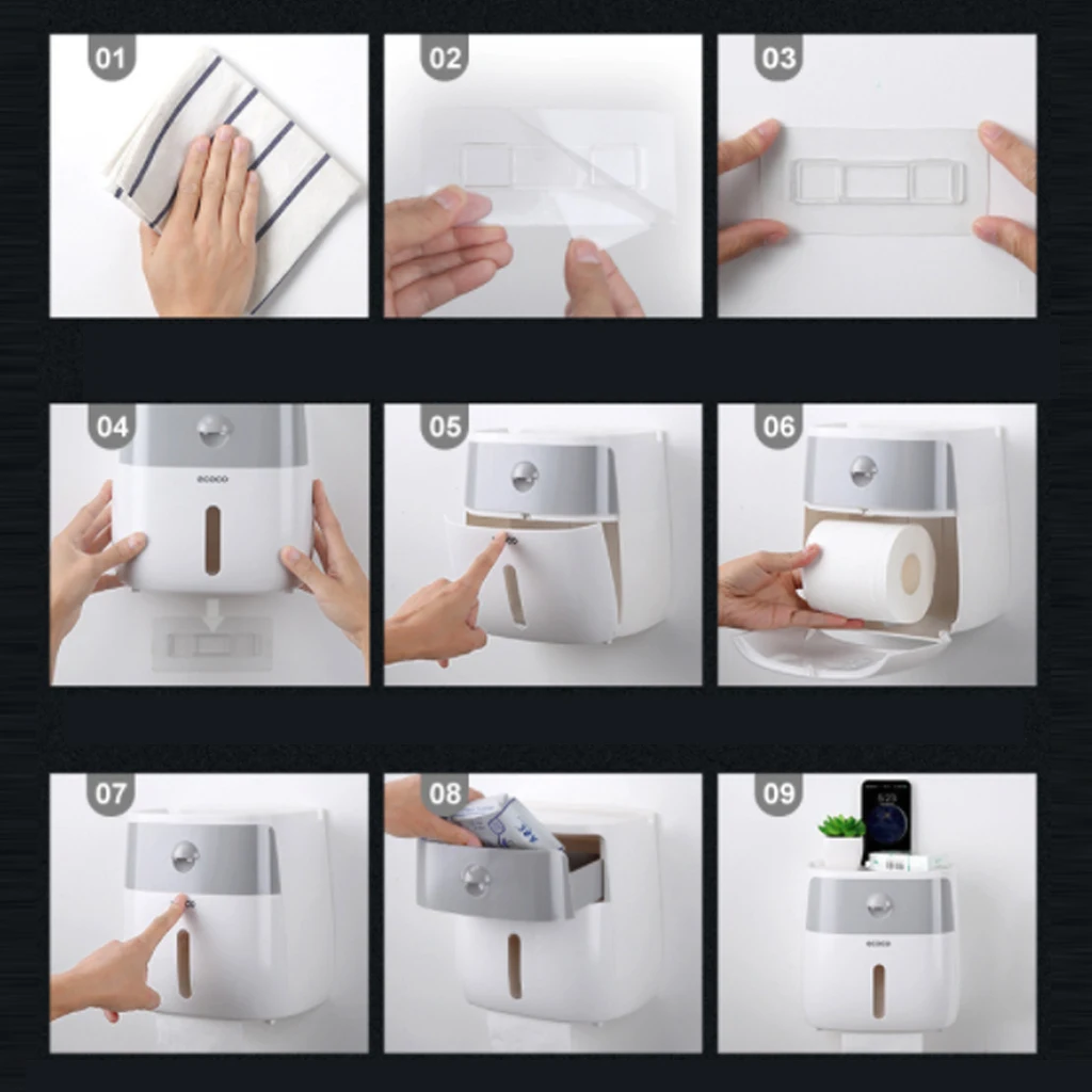 * Диспенсер для туалетной бумаги сделан из нового и высококачественного АБС, который имеет небольшой вес, но прочный, компактный и гладкий вид.