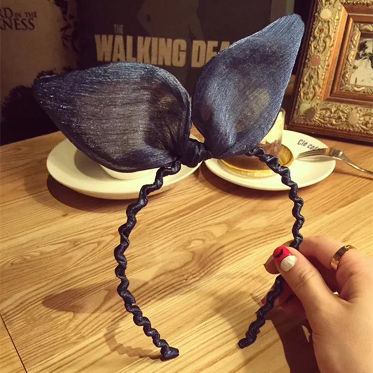1 шт., винтажный обруч для волос в Корейском стиле, обруч для волос с волнистыми кроличьими ушками, украшение для магазина