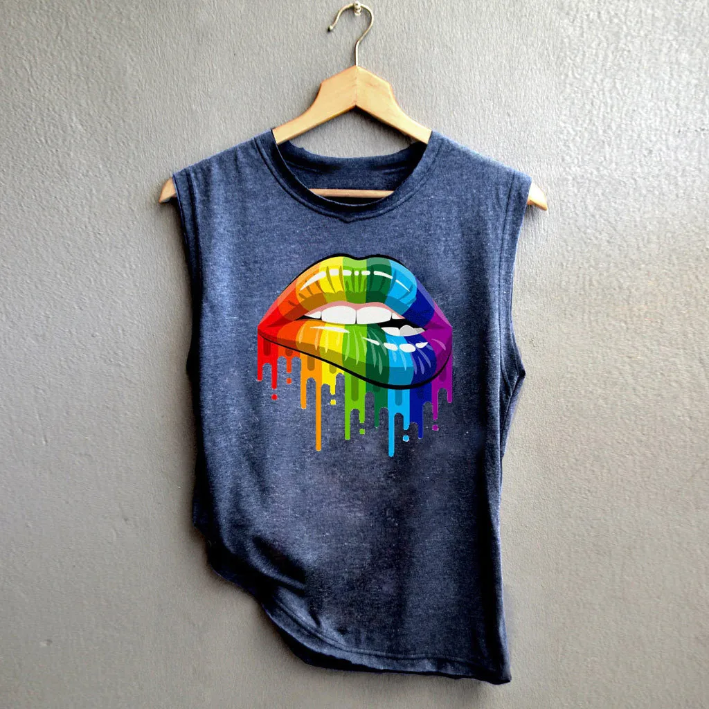 Женский жилет с принтом губ, повседневный свободный спортивный пуловер без рукавов, Топ-туника