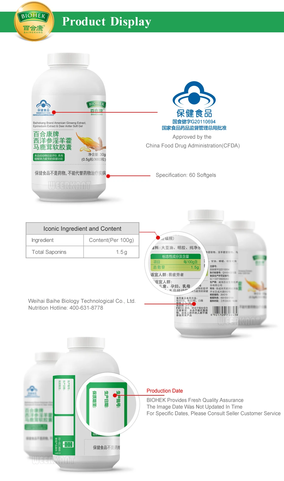Американский женьшень/Волчья ягода/Бархатный рога/герба Epimedium экстракт мягких гелей