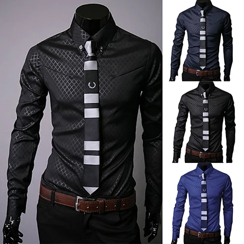 Модная мужская Роскошная деловая приталенная Повседневная рубашка с длинным рукавом
