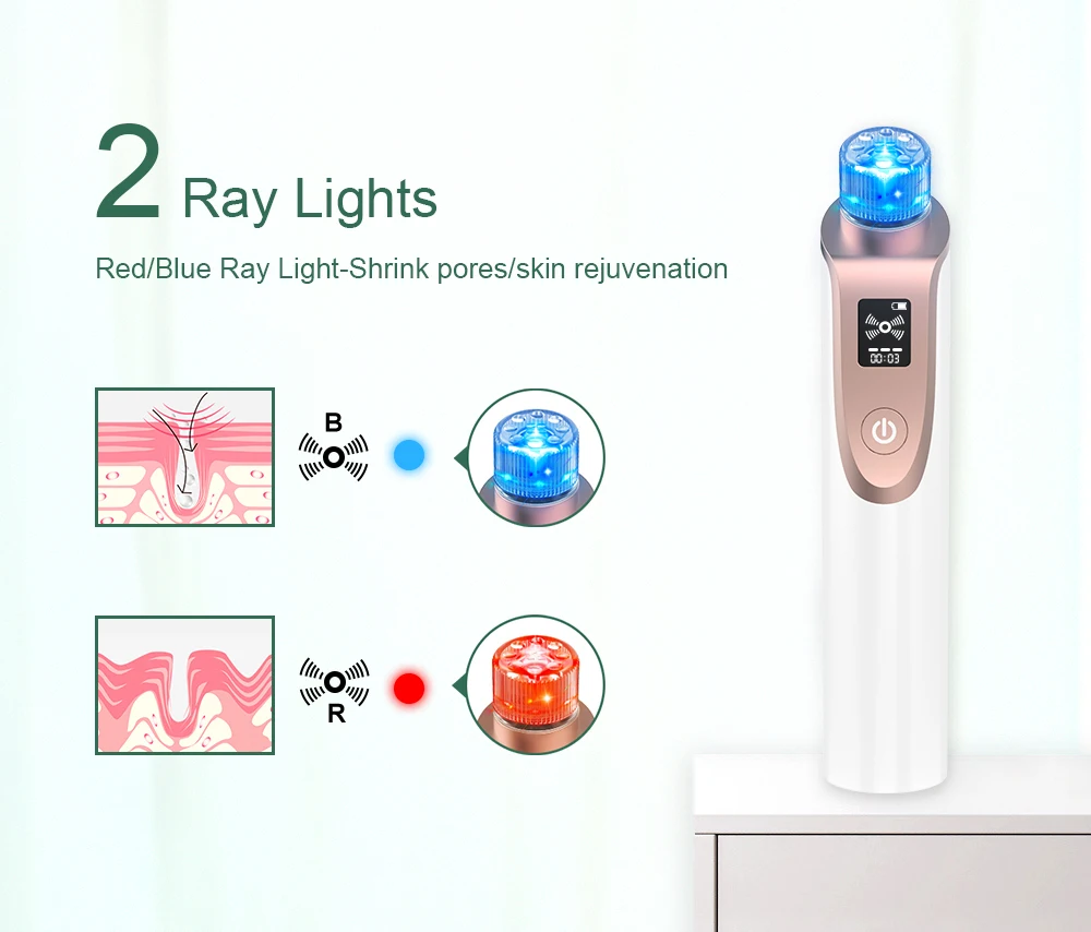 5 Регулируемая сила всасывания с одним нажатием дизайн: пор вакуумная физическая конструкция всасывания от уровня 1 до уровня 5 сила всасывания для удовлетворения различных потребностей лица. Один щелчок для изменения силы и длительное нажатие для выключения устройства. 5 сменных всасывающих головок для различных потребностей кожи: 5 профессиональных всасывающих головок для различных условий кожи. Выбор разных размеров для разных лицевых поверхностей. Чтобы быть вашим профессиональным домашним спа-средством по уходу за кожей. Эксклюзивная функция Beauty Lamp s: это улучшенное средство для удаления угрей, добавьте функцию BEAUTY LAMP. Рисунок лампы можно открыть одновременно с уходом за лицом. Красная лампа-способствует регенерации коллагена, нежной коже, восстанавливает эластичность кожи; Зеленая лампа-разложение меланина, яркое отбеливание кожи, позволяет коже вернуть воду нежной и прозрачной; Синяя лампа-антифлогистика и стерилизация, ингибирование секреции кожи, устранение проблем с шероховатостью и повреждениями кожи. Решаются проблемы с черной головой: грубая пор, грубая кожа, темная кожа, отшелушивает омертвевшую кожу, черные точки и поры кожи, грязь в носу, укрепляет и улучшает эластичность кожи. Легко очищает черную голову, удаляет грязь внутри пор, уменьшает омертвевшую кожу и тонкие линии, массирует и подтягивает кожу. Встроенный аккумулятор емкостью 500 мАч, перезаряжаемая зарядка через USB.