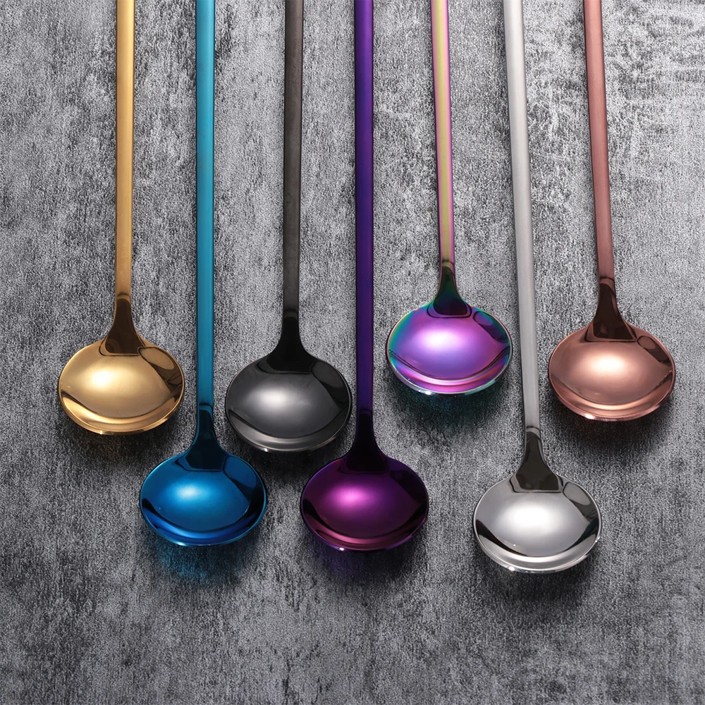 Кофейная ложка радужного цвета с длинной ручкой, десертные ложки для мороженого, Экологически чистая посуда из нержавеющей стали, кухонные принадлежности
