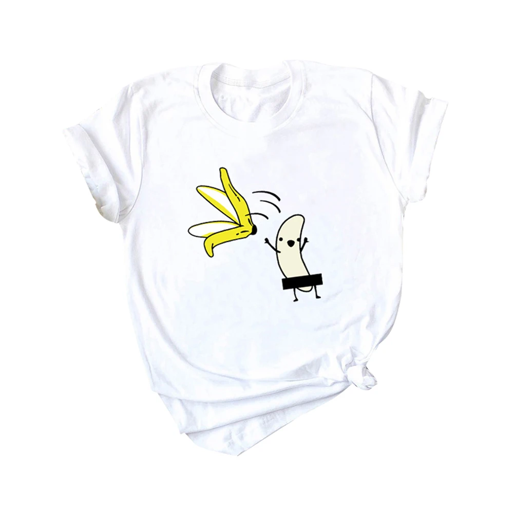 Забавный мультфильм голый банан Печать Женская футболка короткий рукав круглый вырез Тройник Топ