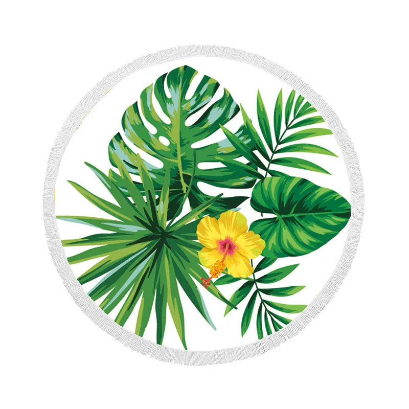 Детская пляжная Подушка, круглый пляжное полотенце из ультратонкого волокна, ткань с мультяшным принтом, Зеленый лист, узор, морские праздничные одеяла