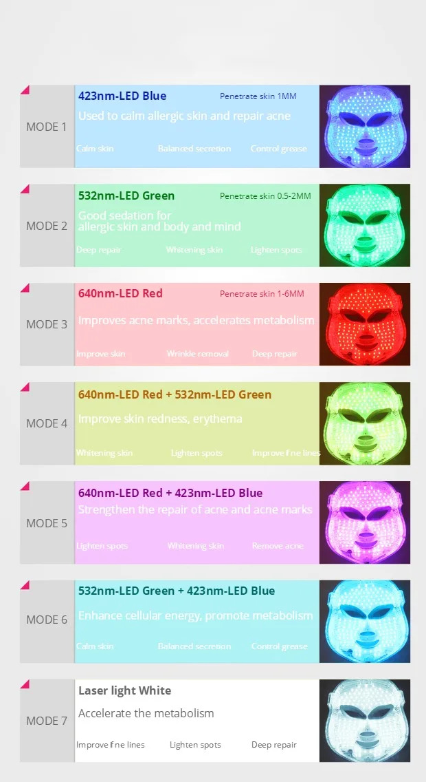 Фотоновая терапевтическая маска для лица с крассветодиодный Одом 3 цвета