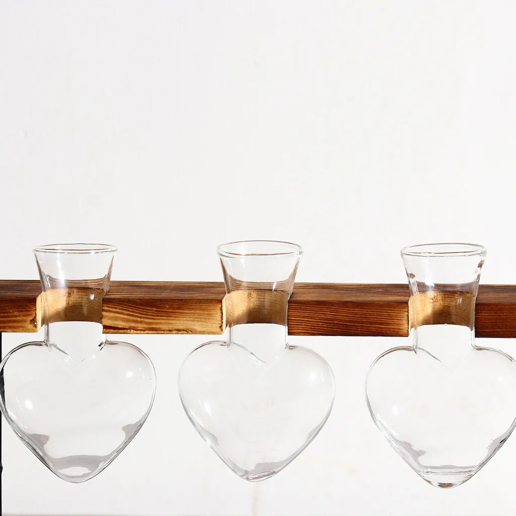 Стеклянная гидропонная ваза в форме сердца цветочный горшок деревянный поднос украшение стола