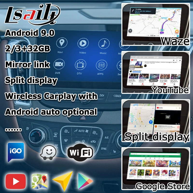 Опционально с беспроводной Carplay, Разделенный экран, зеркальная ссылка, литой экран, HD 1080P, Google MAP, Play Store, голосовое управление