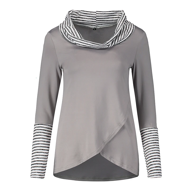 * Описание товара:Женская одежда, повседневная, свободная, футболка, в полоску, с высоким воротником, топы с длинными рукавами, большие размеры