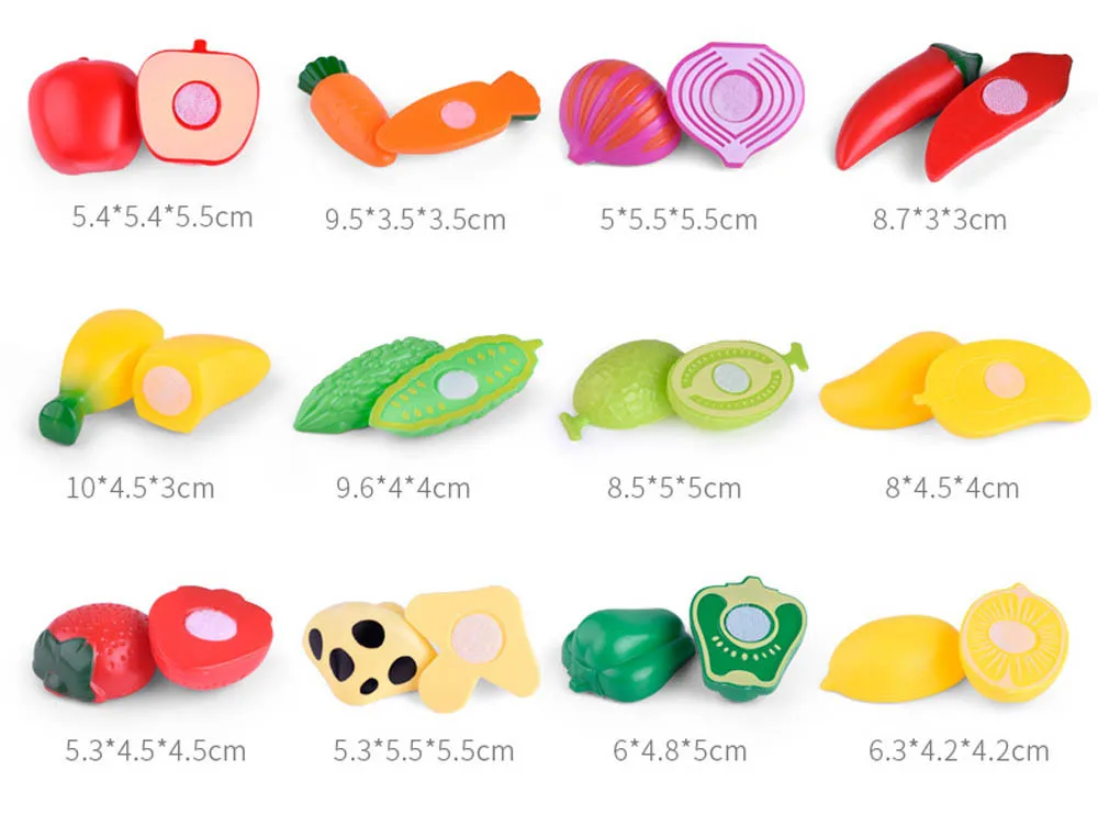 Поставляется с пластиковым ножом для детей, чтобы вырезать игрушки фруктов и овощей