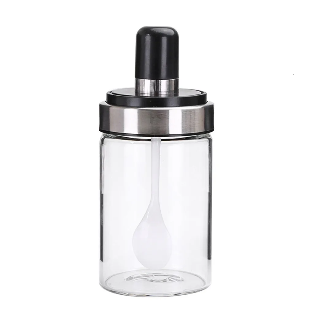 Кухонные принадлежности стеклянная бутылка для приправ ящик для хранения соли банка для специй с ложкой креативный нержавеющий стальной ящик для хранения дома