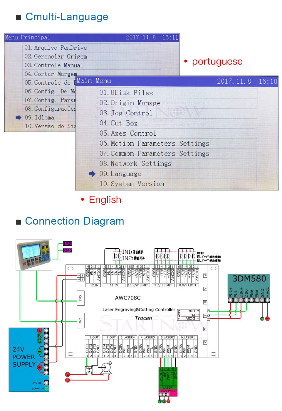 Источник питания:DC24V 3A(Если вам это нужно, пожалуйста, нажмите на первую картинку ниже)