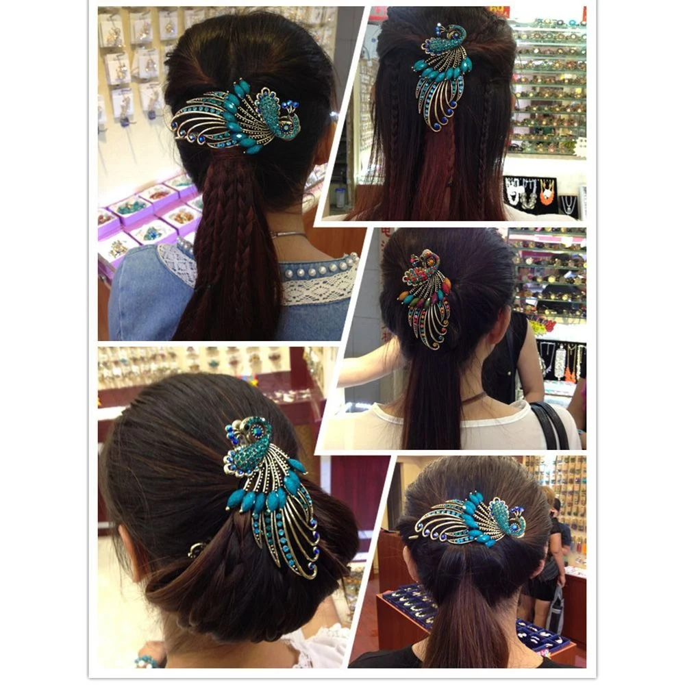 Товар: женские аксессуары для волос Абсолютно новый и с надежным качеством Материал: сплав и смола Размеры: 11,5*6,5 см/4,52*2,56 дюйм (ов) Цвет: 6 видов на выбор Посылка включает в себя: 1 заколка с павлином
