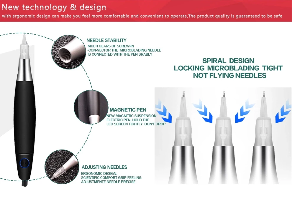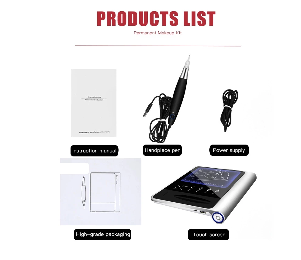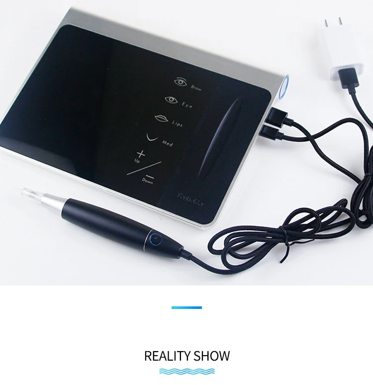 Параметр: Переменный ток: 110 В/240 В 2A DC: 5 В 2A Ватт: 10 Вт Стежков в минуту: 3V- 8000r/мин 4V -12000r/мин 5V- 16000r/мин Размеры пера: 11,8 см * 2,05 см Ход: 2,5 мм Игла выступа: 0-4,5 мм Характеристика: Тип: тату цифровой набор для перманентного макияжа Материал: алюминиевая машина Устройство: алюминиевый наконечник Функция: брови, губы, Веялки перманентные Использование татуировки для макияжа Использование: косметические татуировки ЕЭС, татуировки перманентный макияж Тренинг Преимущество: интеллектуальная татуировка, регулировка скорости Доступны размеры иглы для тату: Micro RL,RS,SF,F,RM,M1 картридж neeldes Сертификат CE-1 год гарантии качества