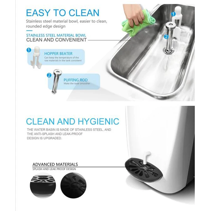 Вес: 42 кг Напряжение: 220,110 в/50,60 Гц Размер: 21*55,4*74 см Хладагент: R404 Объем бункера: 3,8 л Морозильная камера: 1,2л