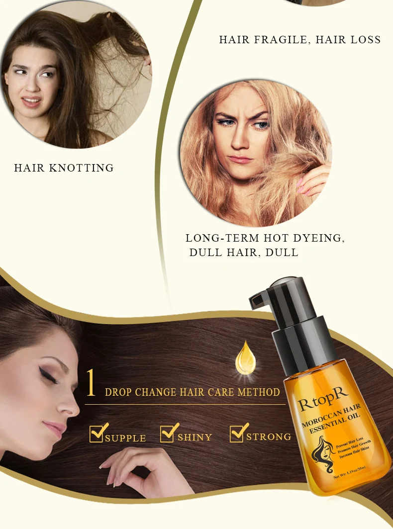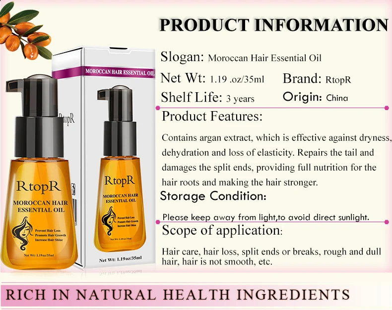 Содержит экстракт марокканского ореха, он был подвержен передовой в мире технологии экстракции, чтобы эффективно противостоять сухим, обезвоженным и неэластичным волосам. Он концентрируется на ремонте поврежденных кончиков волос, мгновенно разглаживая волосы. В то же время, он обеспечивает полное питание корней волос, делая волосы более сильными, блестящими, мягкими. Достичь эффекта предотвращения выпадения волос и содействия росту волос.