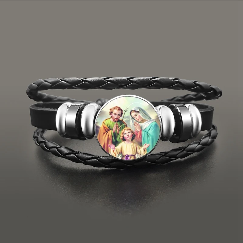 Классический браслет на кнопках с изображением Девы Мадонны, Девы Марии, Иисуса, плетеный кожаный браслет на веревке, христианские ювелирные изделия