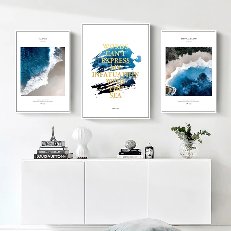 Тропический остров Холст плакат и печать жизнь Цитата синий ландшафт с морскими волнами канва живопись спальня гостиная современный декор поп
