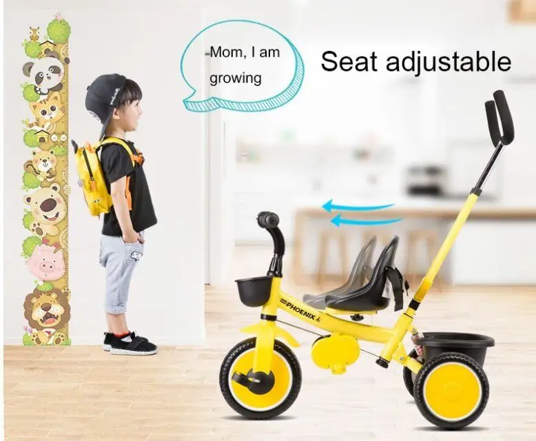 Детский ручной трехколесный велосипед, амортизирующее сиденье, вращение на 180 °, Экологически чистая Нетоксичная краска, съемный толкатель, двойной ножной тормоз, От 2 до 6 лет ребенка