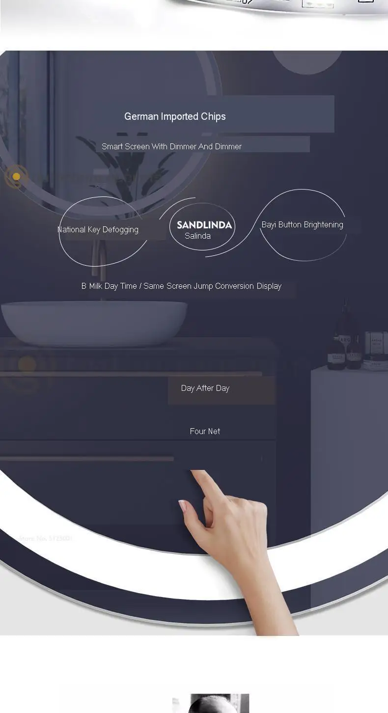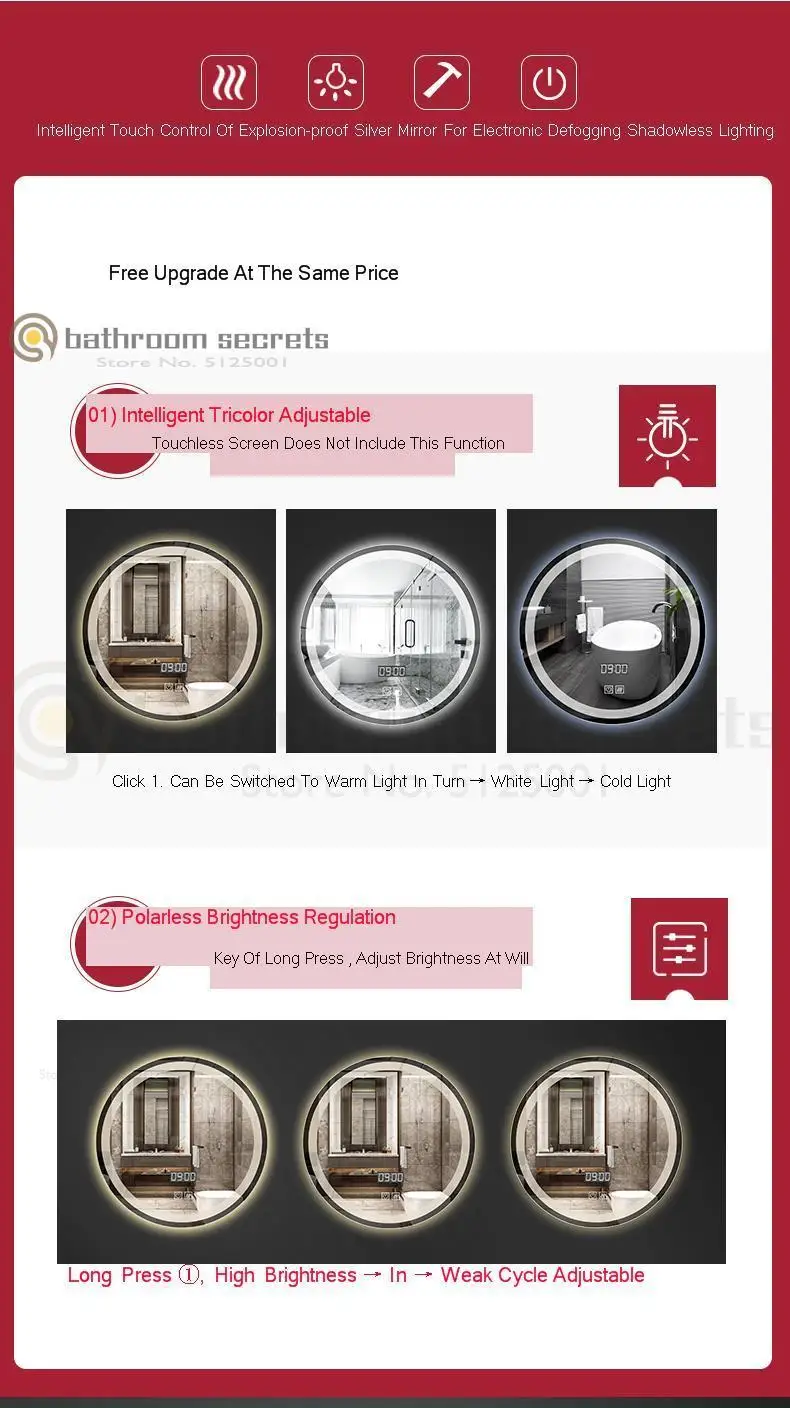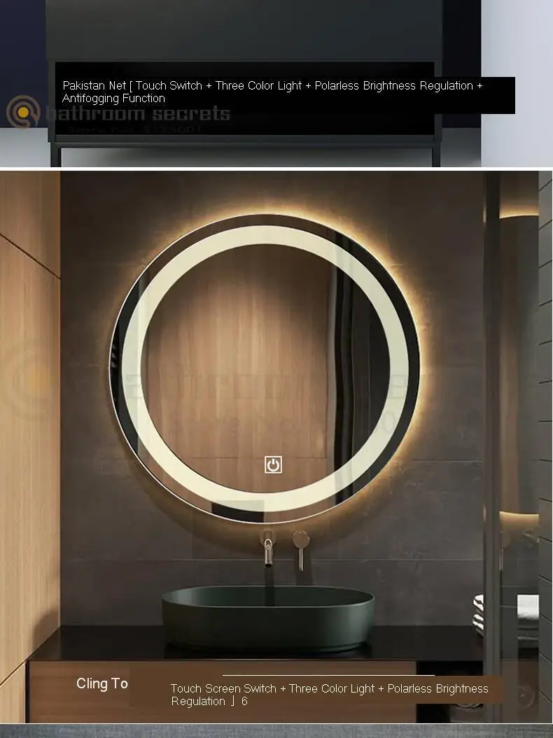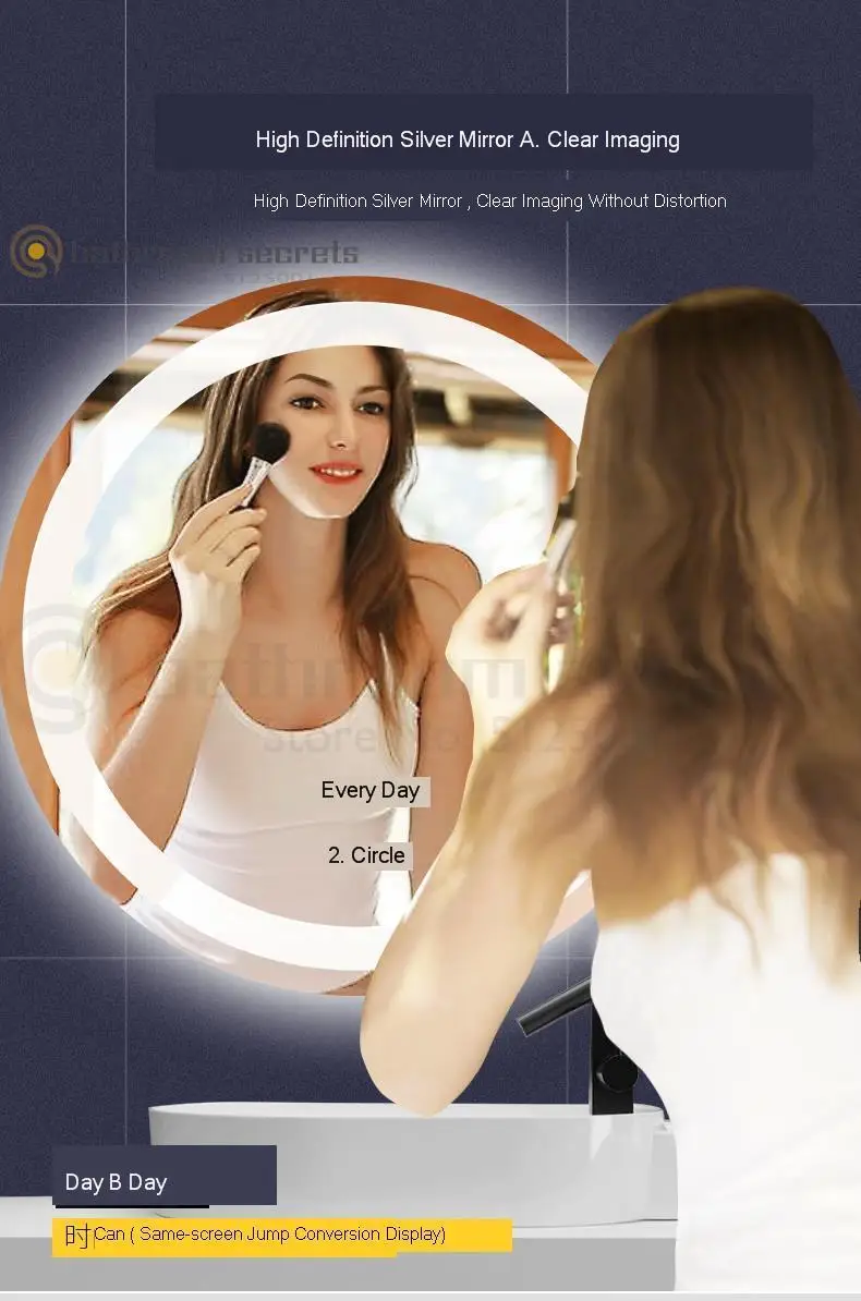 Умный сенсорный светодиодный светильник, зеркало для ванной комнаты, анти-туман, настенный макияж, черная рамка, кованые края, круглыйUS $151,01 /