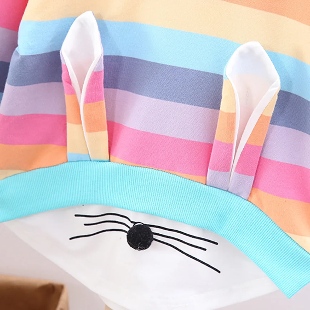 Полосатая толстовка с капюшоном и рисунком радуги для маленьких девочек, топы