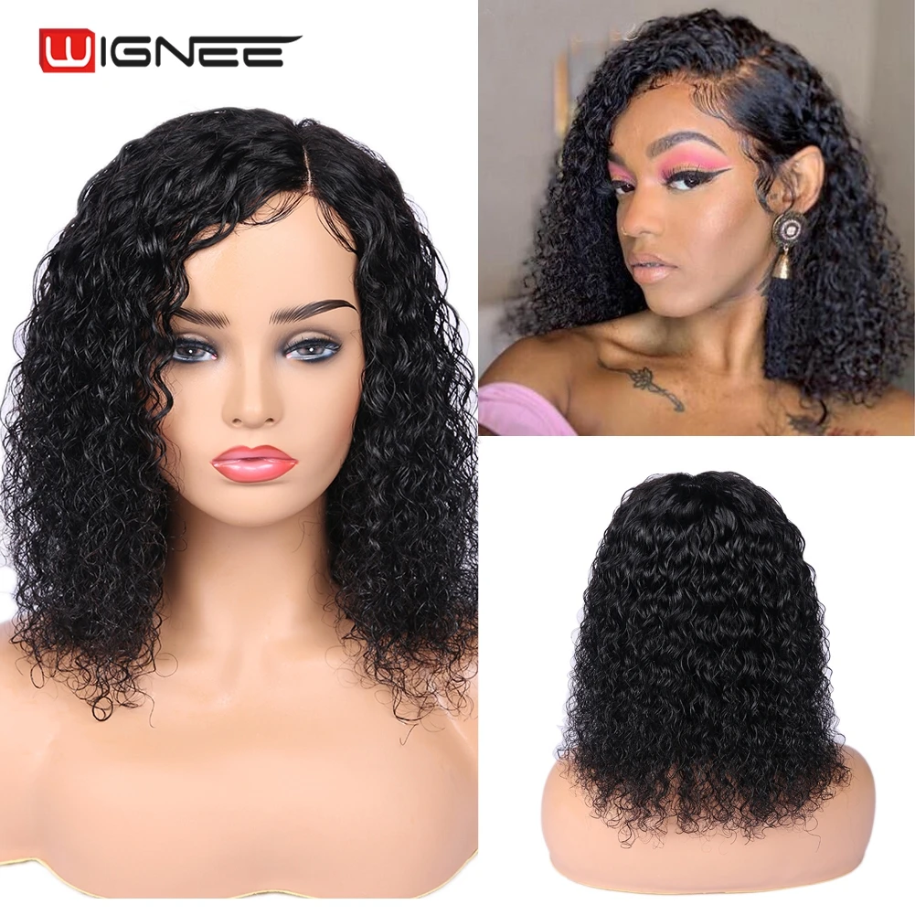 Wignee сторона часть кудрявые человеческие волосы парики с детскими волосами для черных/белых женщин preprucked бразильские волосы афро кружева человеческих парик