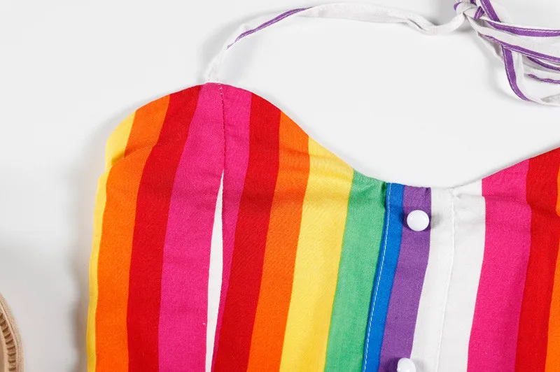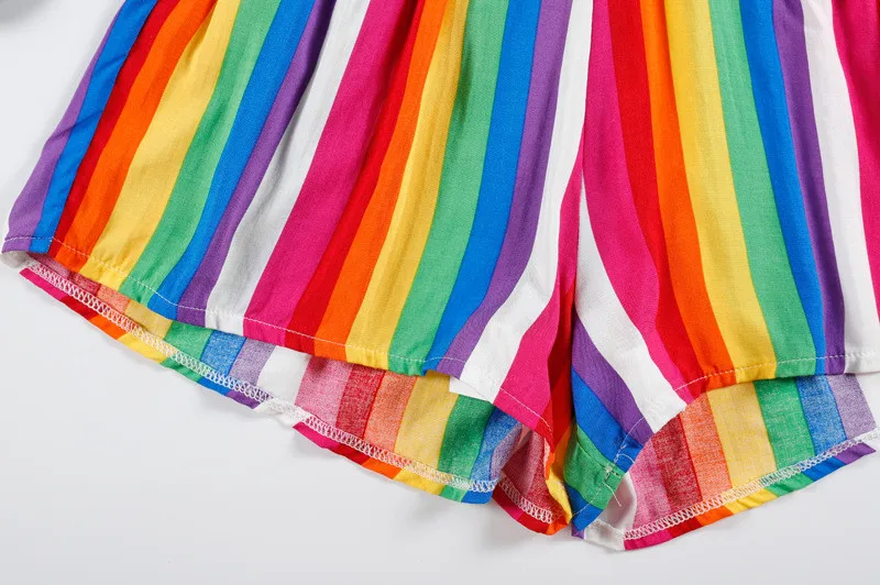 Спортивный костюм для Женский костюм из двух предметов конъюнкт де пикантные Для женщин дамы в радужную полоску бретели для бюста и шорты, комплект из двух предметов, костюмы #50