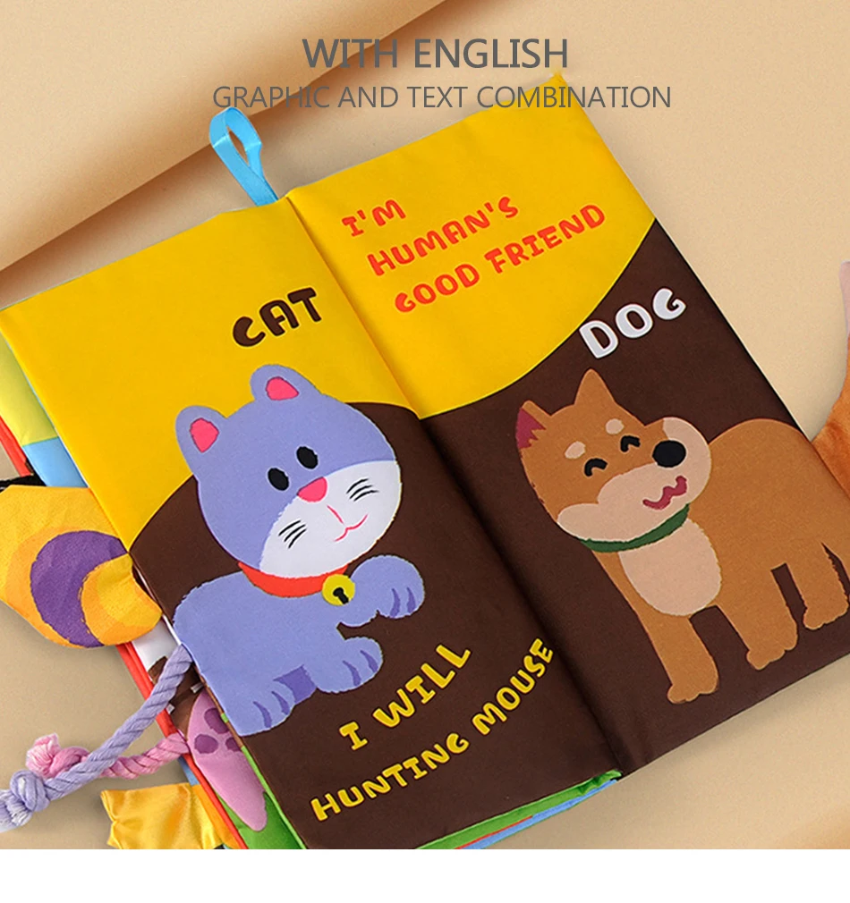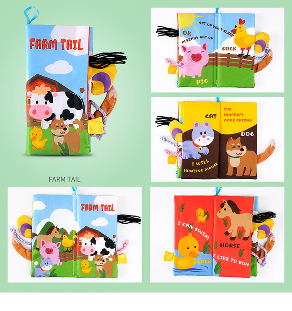 Мягкая тканевая книга для младенцев стереоскопический хвост животных