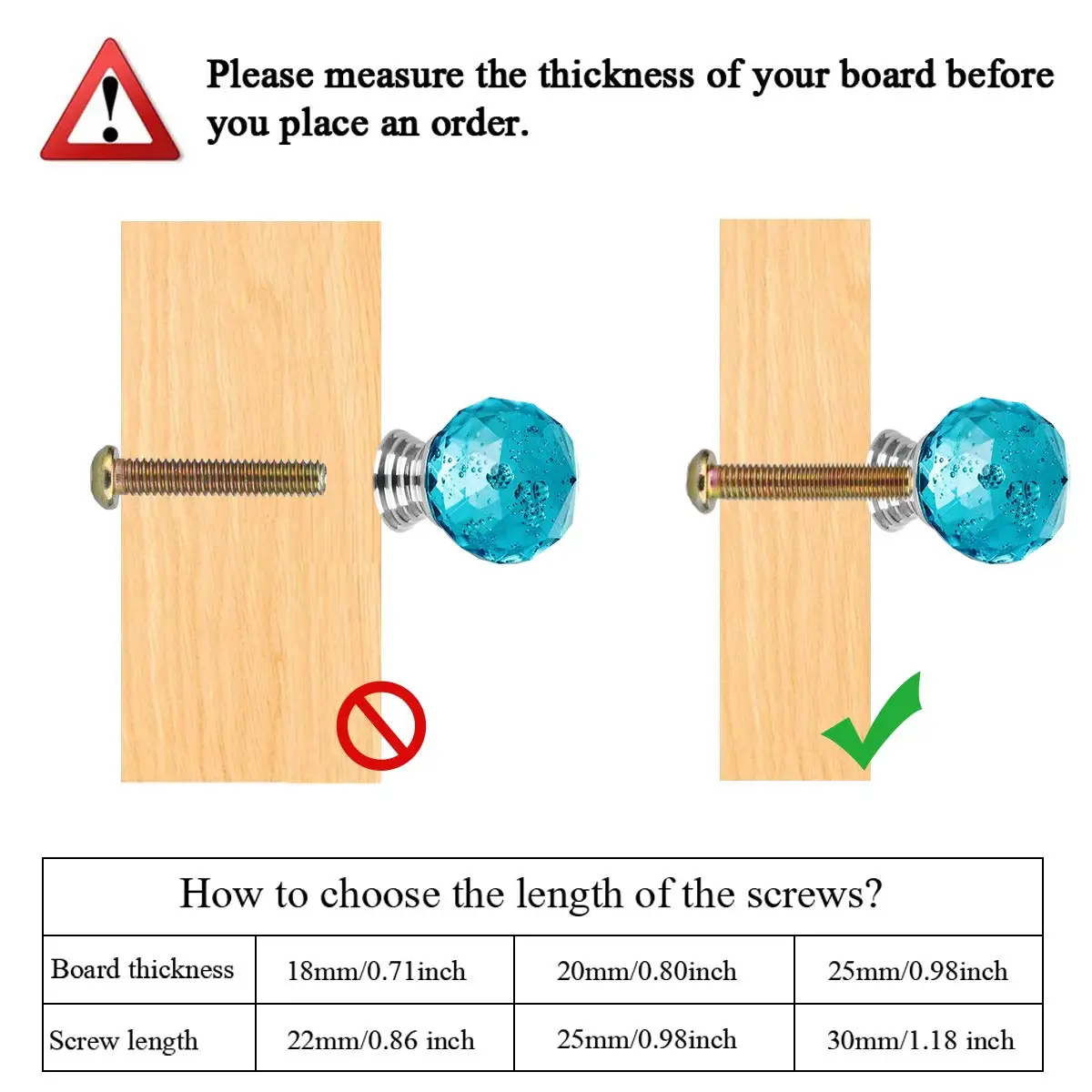 Сплав кристалла и цинка • Сферическая Алмазная ручка шкафа материал: сплав кристалла и цинка, картонная коробка, одна посылка, 10 внешних коробок. Структура прочная и внешний вид блестящий. Каждая часть тщательно изготовлена с плавным переходом и отличным прикосновением. Более элегантные, чем обычные ручки на рынке. • 3 различных размера винтов: 10 шт. 22 мм, 25 мм, 30 мм винтов для каждого размера. В отличие от большинства ручек на рынке, мы предлагаем 3 размера винтов для удовлетворения различных потребностей. Ручка имеет диаметр около 1,18 дюйма (30 мм), высотой около 1,46 дюйма (с ультратонкой оправой 37 мм), а также диаметр основания около 0,75 дюймов (19 мм). • Универсальный: Наши хрустальные ручки очень красивые и прочные, подходят для дома, ванной комнаты, гостиной, общежития и офисных шкафов, туалетных столиков, ящиков, шкафов, шкафов. Выглядит очень красиво и оказывает волшебное влияние на украшение. Спиральные ручки шкафа имеют прочную конструкцию, которая обеспечивает долговечное оборудование и элегантный, элегантный вид. • Простота установки: Найдите отверстие, которое будет установлено на доске, и сверлите, затем проденьте винт с задней части доски и затяните на ручку. Очень легко установить их с помощью бытовых инструментов. Будьте внимательны во время работы. • Покупка без риска: 100% гарантия соответствия. Если у вас есть какие-либо вопросы о наших кристальных ручках, пожалуйста, свяжитесь с нами, и мы поможем вам решить проблему в течение 24 часов.