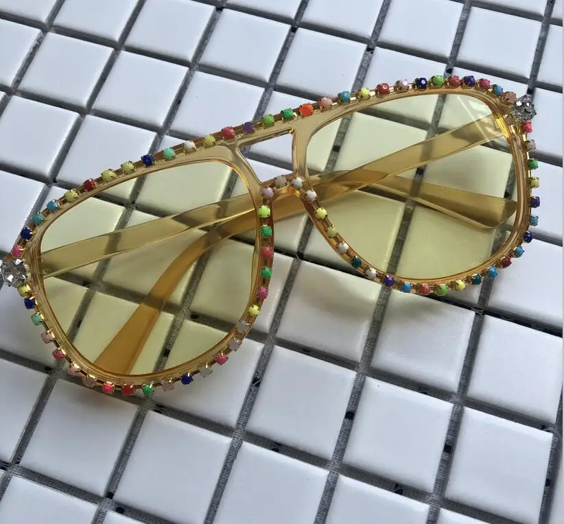 Летние радужные бусы женские солнцезащитные очки Poilt желтые линзы негабаритные очки Gafas De