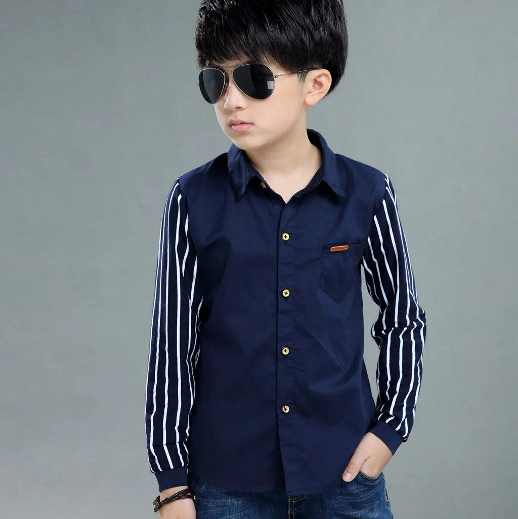 Рубашка джентльмена в полоску с длинными рукавами для мальчиков-подростков; Топы; Одежда