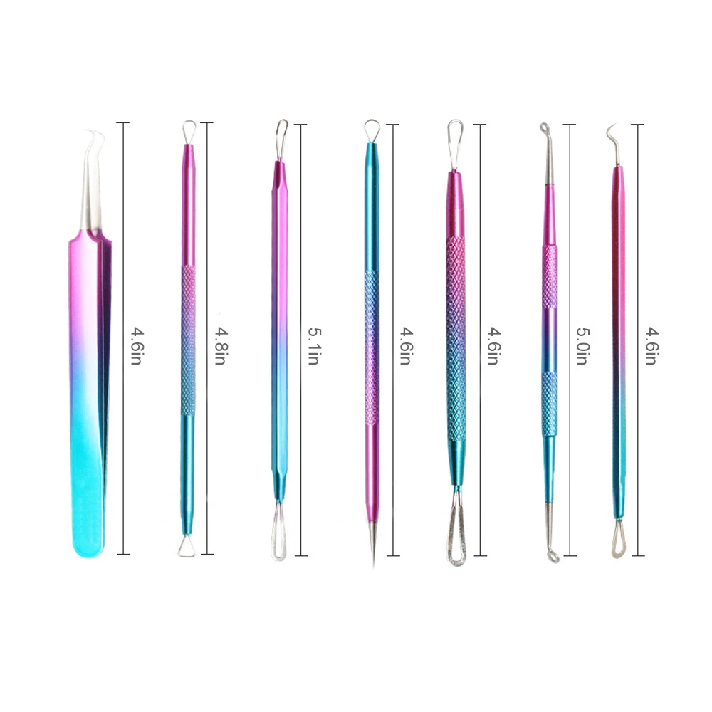 1,7 шт Профессиональные Высококачественные толкатели и экстракторы для удаления черных точек, белых головок, прыщей и пятен. 2. Все экстракторы используются для глубокого нажатия черных точек и белых головок и т. д. 3. Двойные инструменты, Инструмент для извлечения игл, Инструмент для извлечения конусового купола и экстракторы для каждого размера и формы черных точек. 4. Высококачественные инструменты для профессионального использования и личной гигиены. 5. Лучшее время для удаления черных точек-это после душа или просто используйте теплое полотенце для лица, чтобы открыть тонкие поры.