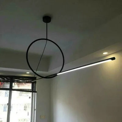 Современный черный светодиодный подвесной светильник Материал: железо Светильник источник света: светодиодный чип в том числе лампы Размер: длина 120 см, регулируемая по высоте Напряжение: от 110 до 240 В Применение: гостиная, спальня, зал, лобби, прихожая, проход, балкон и т. Д.