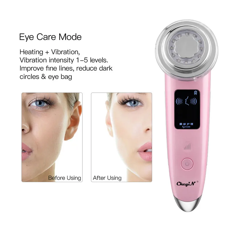 Режим 4: Уход за глазами, функция: нагрев + вибрация, интенсивность вибрации 1-5 уровней. Улучшите тонкие линии, уменьшите темные круги и мешки под глазами.