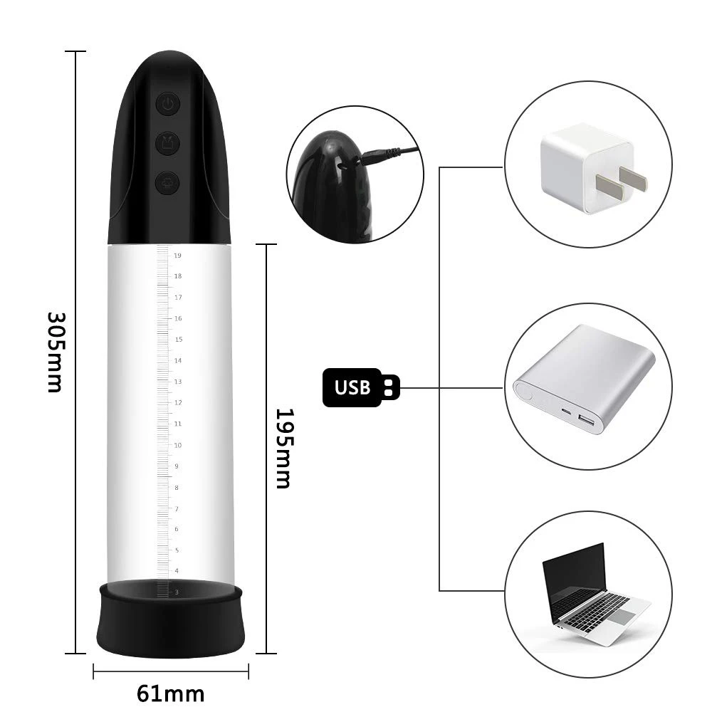 Автоматический вибратор для увеличения пениса, перезаряжаемый через USB, Электрический вакуумный насос для пениса, тренировка эрекции полового члена для мужчин