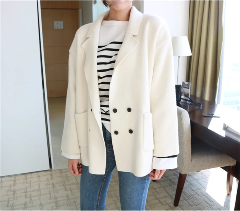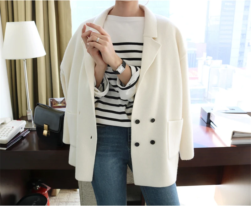 Кашемировый кардиган, свитер для женщин, зимний джемпер, однотонный корейский Блейзер, свитер на пуговицах, большой кардиган Harajuku, двубортный, Новинка