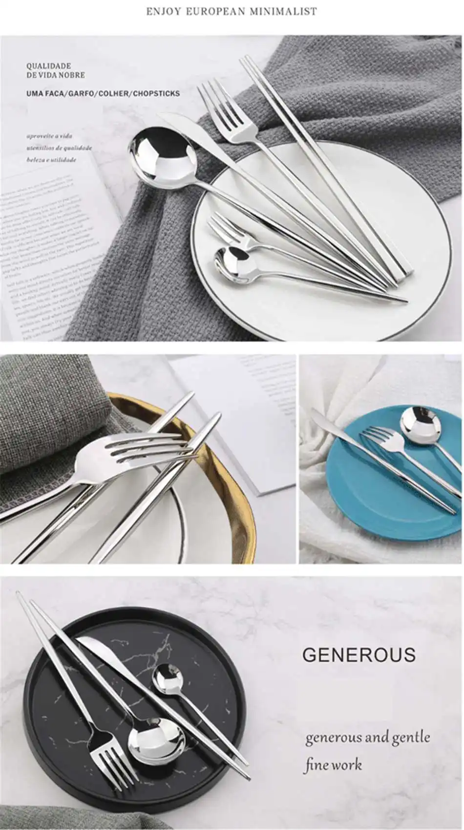 Набор столовых приборов из нержавеющей стали золотистого цвета, портативный столовый набор, зеркальная полировка, вилка, ложка, нож для стейка